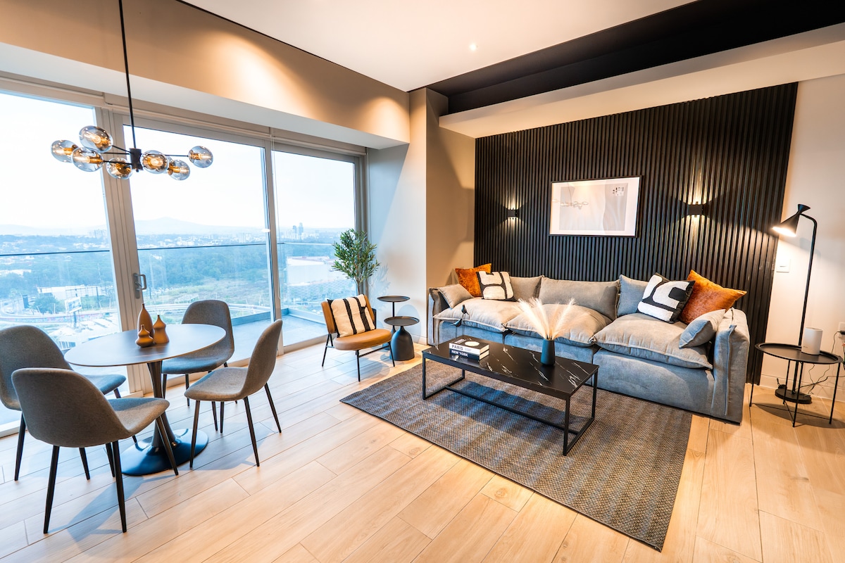 Smješten na visokom uglu, ovaj luksuzni stan od 235 m² (2.500 sq ft) u ekskluzivnoj četvrti Valle Real u Zapopanu nudi neusporedive panoramske poglede. Ovo posebno uređeno utočište je dizajnirano za putnike koji traže luksuz, a sadrži sadržaje hotelskog nivoa kao što su bazen i osiguranje 0–24. Uz Wi-Fi od 600 Mbps i vrhunsku lokaciju u blizini tržnog centra Andares i kampusa Oracle, služi kao vrhunska korporativna baza ili bogato porodično utočište u području metroa Guadalajara. ⸻