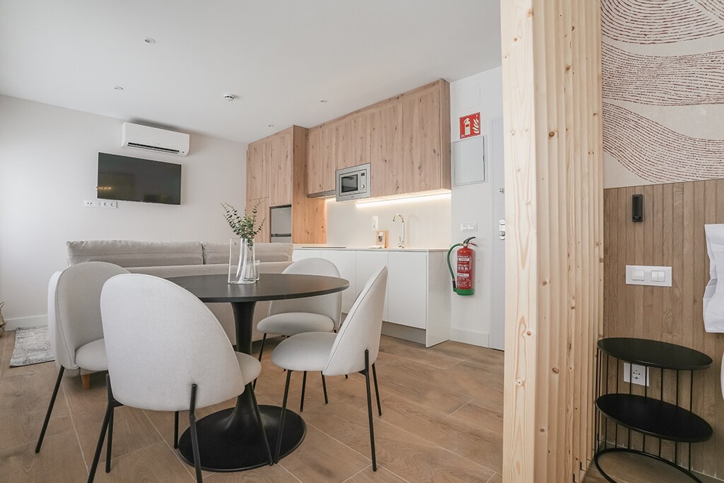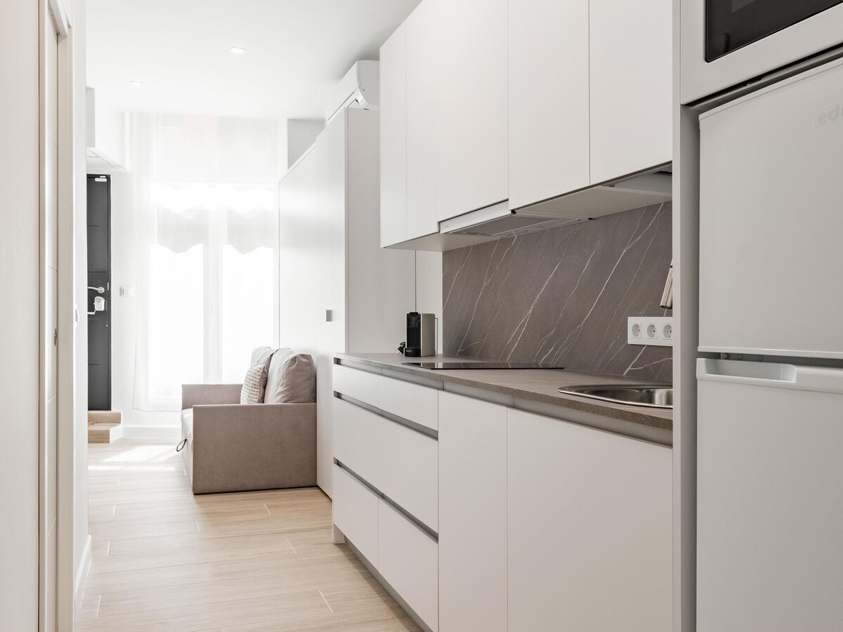 Veličanstven stan od 45 kvadratnih metara u srcu Madrida. Sa spektakularnim dizajnom i dekoracijom, prostranim prostorima i visokim plafonima, stan je opremljen svime što vam je potrebno za boravak u Madridu. Dnevni boravak ima tri balkona s pogledom na ulicu koji pružaju veliku osvijetljenost stanu. Spavaća soba ima privatno kupatilo i radni sto. Od stana možete prošetati do gotovo svih legendarnih tačaka Madrida.