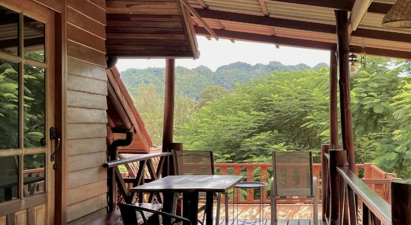 Mjesto vam pruža panoramski pogled na rijeku Kwai Noi. Mala je, ali praktična. Ima drvenu unutrašnju dekoraciju i drvenu terasu od 24 m2