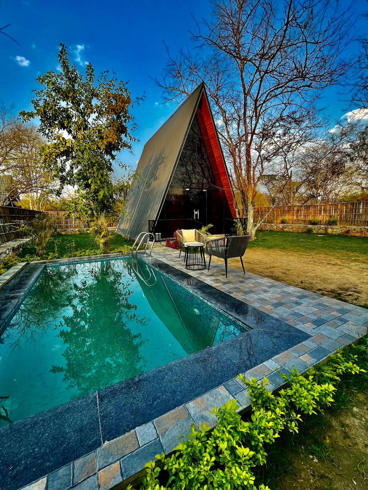 TheTriangleHaven:2bhk A-frame villa/pool/lawn/wifi