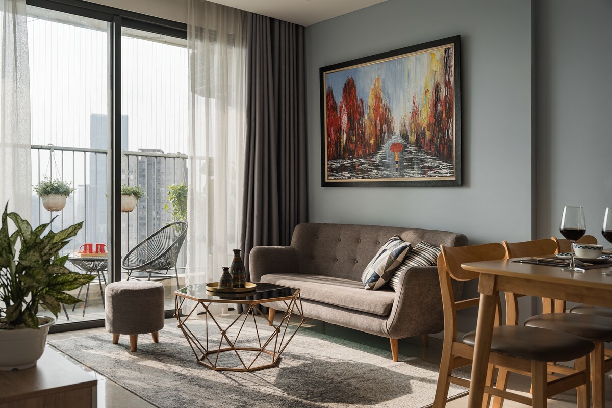 Dovedite cijelu porodicu u ovaj nevjerovatni smještaj s mnogo prostora za igru. Kondominij je dizajniran u modernom stilu, sa sadržajima. U zgradi se nalazi monumentalno područje Vincom, gdje možete jednostavno kupovati u restoranima, restoranima, izuzetno ukusnim kafićima u roku od 5-10 minuta hoda. U našem stanu uvijek održavamo čistoću i mirisom svježeg mirisa. +Balkon s visokim pogledom. Možete uživati u svom boravku na najromantičniji način zajedno s filmovima prikazanim na Netflixu