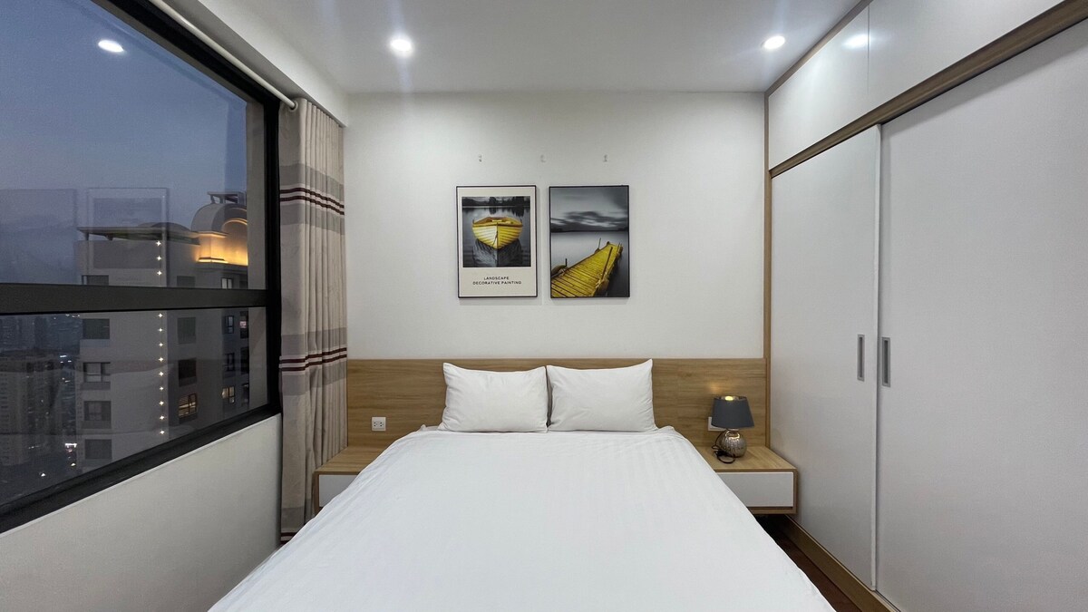 Luksuzni stan od 50 m2 s 2 spavaće sobe na 43. spratu u C2 Vincom D'Capitale, ulica Trần duy hưng 119, područje Trung hòa. 1 bračni krevet i 1 krevet za jednu osobu s mekim madracima visokog kvaliteta 1 KUPATILO: Potpuno opremljena KUHINJA: frižider, mikrovalna pećnica, električno kuhalo za vodu, lonci, tave, štednjak,... DNEVNI BORAVAK: udoban kauč, balkon na 43. spratu, aparat za vodu; PERILICA RUBLJA Zgrada u blizini BigC-a, Vincom centra, bankomata banke, kina, dječjeg igrališta, ...