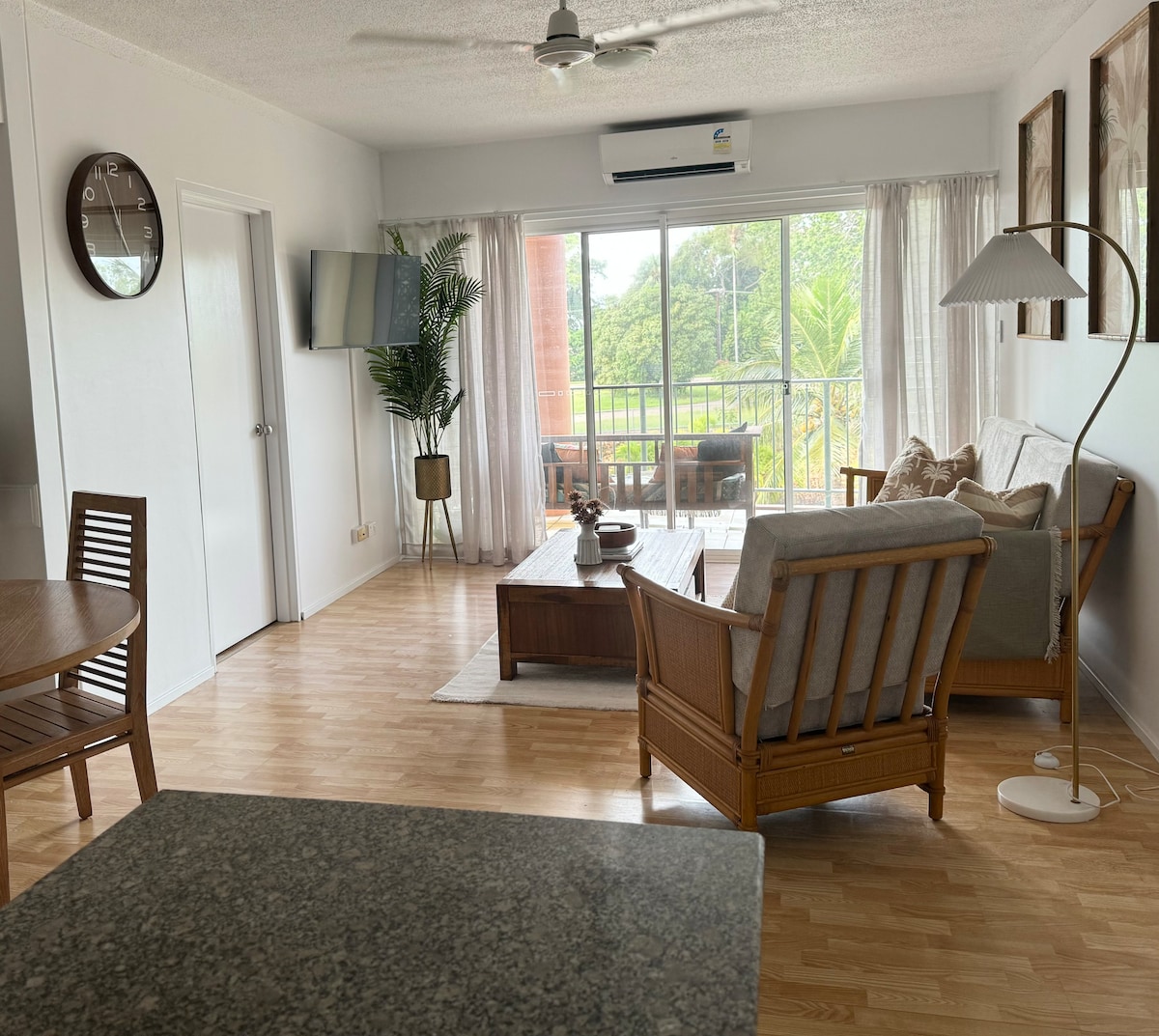 Dobro došli u našu mirnu jednosobnu jedinicu u Marina View Apartments, Cullen Bay. Ovaj prizemni smještaj nudi jednostavan pristup zajedničkom bazenu i prostoru za roštilj. Uživajte u klima-uređaju, dobro opremljenoj kuhinji s aparatom za kafu, udobnoj trpezariji/radnom prostoru i udobnom dnevnom boravku. Spavaća soba ima bračni krevet s dovoljno prostora za odlaganje.