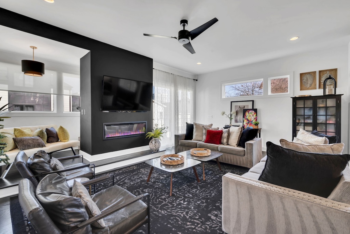 Tražite kvalitetan doživljaj u Nashvilleu? Ovo je mjesto za tebe. Moderan, elegantan i potpuno opremljen za vaš boravak. Ova kuća u nizu ima krovnu terasu i dva dnevna boravka za opuštanje prije večernjeg izlaska. Prekrasno utočište, dostupno pješke do: Centar Broadwaya (1 milja) The Gulch Restaurants (0,5 milje) Demonbreun St Bars (0,9 milja do Tin Roof) Midtown barovi (1 milja) Muzički kongresni centar za konferencije (0,9 milja) Bridgestone Arena na (1,2 milje) Nogometni stadion Titans (1,8 milja)
