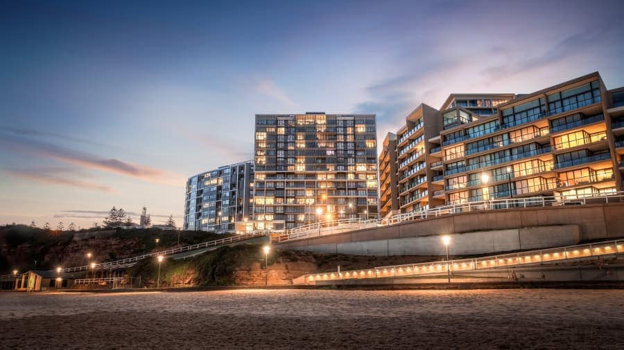 Modern fourth floor apartment across the road from Newcastle Beach. Balcony with views to Newcastle Cathedral. Centrally located & close to beaches, cafes, restaurants & spectacular coastal walks. King Edward Park, Nobby's Beach, Harbour Breakwater Walk, Lighthouse & historic Fort Scratchley all within easy walking or cycling distance. Civic Theatre, Newcastle University City Campus, Newcastle West & Newcastle Interchange are all within easy access via the Light Rail.