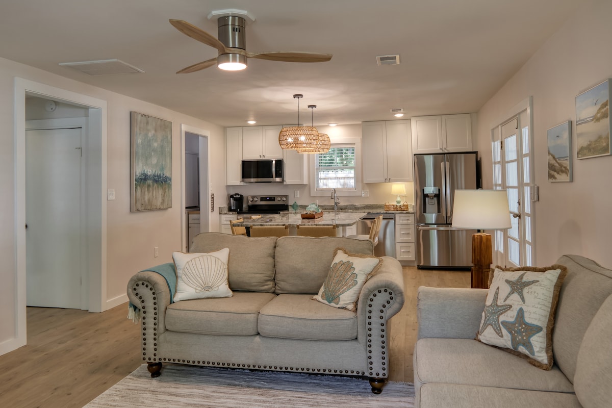 NEW! Coastal Escape! Steps to MarshWalk! Fire Pit!