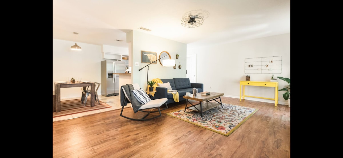 Elegantno kratkoročno iznajmljivanje smještaja u centru Austina. Gosti vole mir i udobnost i pješački pristup lokalnim prodavnicama, restoranima i barovima. Savršeno za posjete porodici u blizini, prisustvovanje događajima ili kratke poslovne boravke. Brzi pristup UT-u, Moody Centru, stadionu Q2, SXSW, F1, Downtownu i Domenu. Opustite se na privatnom balkonu ili uživajte u prozračnim svodnim plafonima i bogatim drvenim podovima. Besplatan parking. Idealno za parove, porodice ili poslovne putnike. Dozvola za kratkoročno iznajmljivanje smještaja u Austinu: pogledajte slike za dozvolu