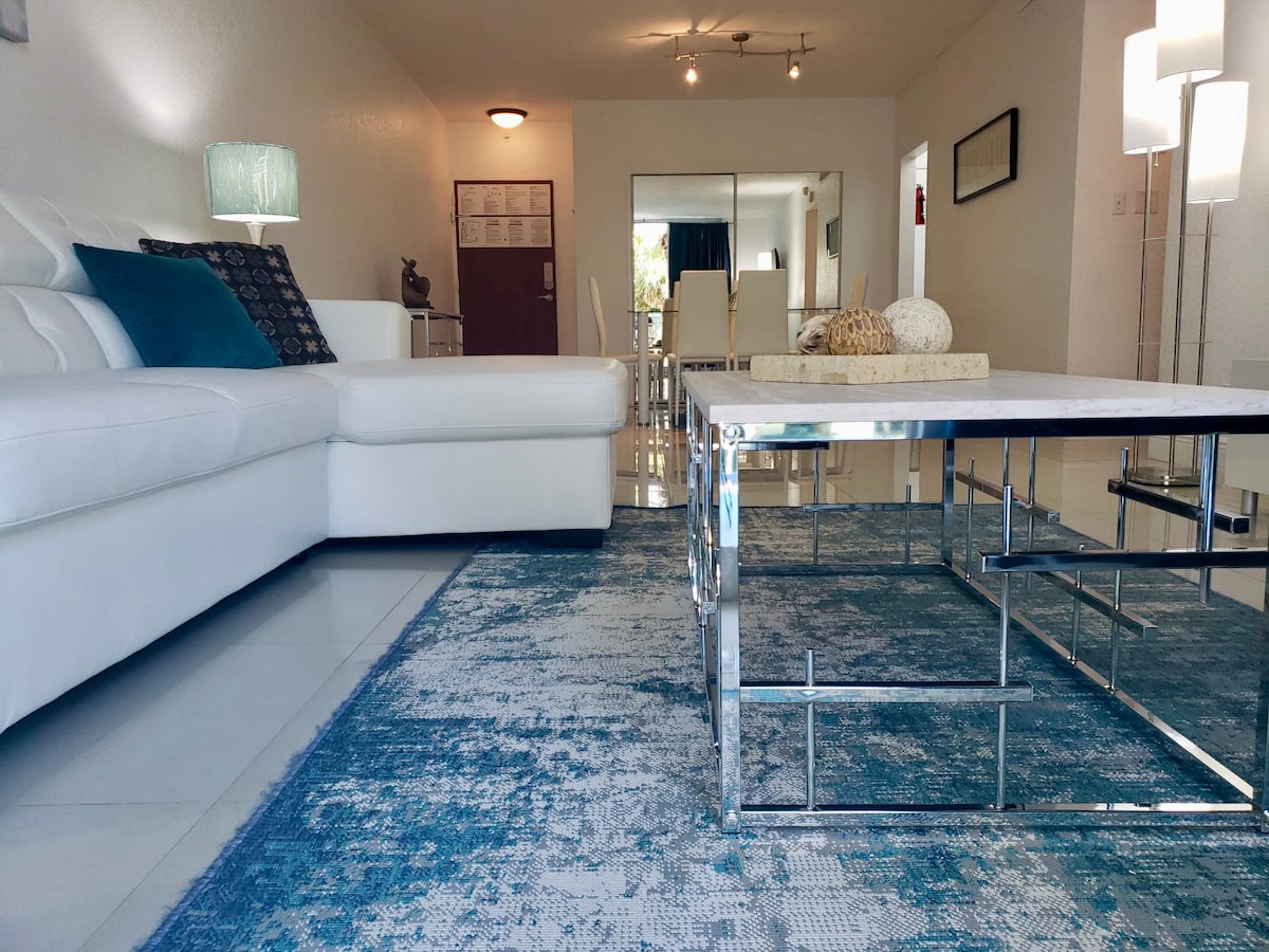 *Postoje dodatne naknade koje naplaćuje objekat : jednokratna naknada za sadržaj u iznosu od 30 USD za svake 2 odrasle osobe; plus parking* Više informacija potražite u nastavku. Dobro došli u naš tropski raj - ostavite sve svoje brige za sobom! Naš skriveni dragulj u Hollywoodu udaljen je samo 15 minuta od aerodroma Fort Lauderdale. Luksuzni kondominij uz okean s 2 grijana bazena i direktnim pristupom plaži. Sadrži bijeli plutajući strop, led rasvjetu koja mijenja boju, mramorne podove i potpuno opremljenu kuhinju! Terasa na 7. spratu gleda na vrt/grad.
