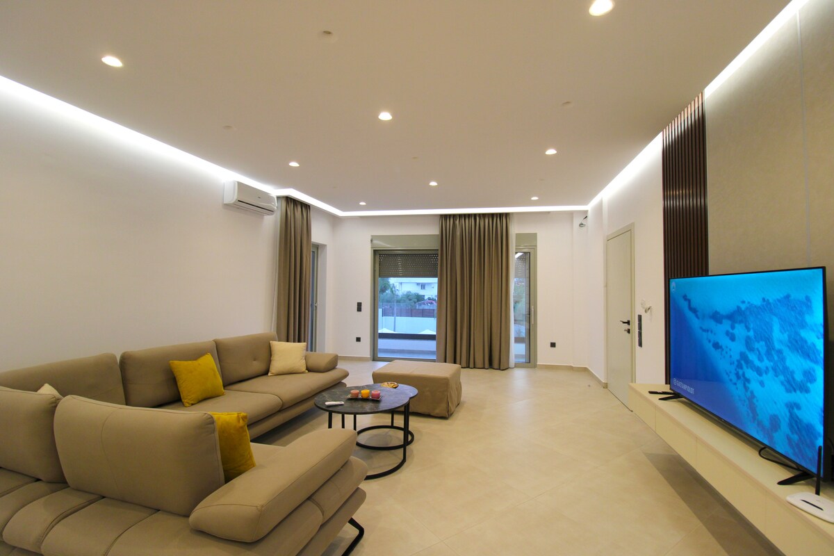 Opustite se sa svojom porodicom ili prijateljima u ovom luksuznom stanu u srcu sela Ksamil. Najbolji dio je bazen i besplatan parking u sklopu objekta. Stan je dobro opremljen klima-uređajem u svakom prostoru, mašinom za pranje veša, rernom, tosterom za kuhinjsko posuđe itd. Bazen je savršen za opuštanje i imat ćete besplatne ležaljke i suncobrane. Posteljina i peškiri su obezbijeđeni gostima, a također i besplatno čišćenje svaka tri dana. Slobodno možete uživati u odmoru u našem smještaju.