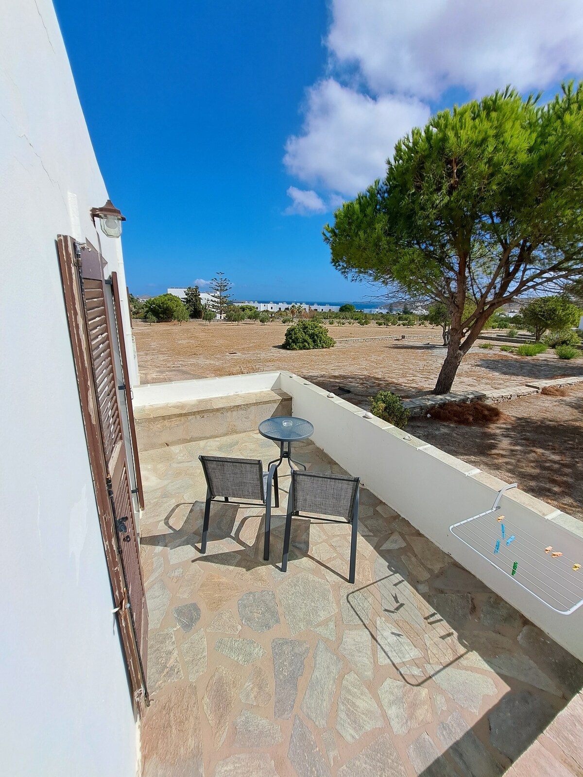 At the port of Antiparos, Cycladic style studio, fully equiped with sea view. One main double bedroom, small living room with two single beds,dining table and open kitchen. 15m2 veranda with pergola full of bougainville. BBQ available at the garden