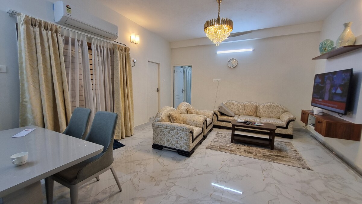 Potpuno klimatiziran stan u IT koridoru ulice Old Mahabalipuram (OMR) u Chennaiju, u blizini škole Sishyaa (Thuraipakkam), tržnog centra BSR, bolnice Curi, specijalne bolnice Apollo, Svjetskog trgovinskog centra, golf sela AKDR, kina i restorana Sangeetha. Brzi Wi-Fi za rad na daljinu, potpuno opremljena kuhinja. Swiggy, Zomoto, Blinkit itd. nude dostavu na kućnu adresu. Bankomat, apoteka Apollo i nekoliko brendiranih trgovina odjećom na pješačkoj udaljenosti. Potpuno novi dječji krevetić dostupan za porodice s bebama