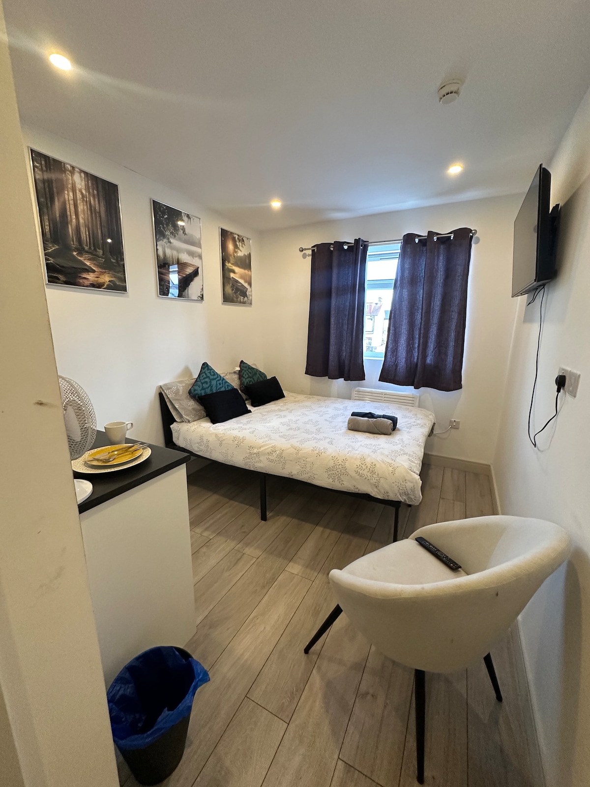 Welcome to your cozy retreat in vibrant Streatham! This modern self-contained studio, situated in a safe and quiet neighbourhood, is perfect for solo travellers, couples, or business visitors seeking a comfortable, private stay in South London. With an ensuite bathroom and kitchenette, you’ll have everything you need for a relaxing getaway. Enjoy a comfy double bed, smart TV, and stylish decor. Guests also have access to a full kitchen just steps away for larger meals or extra prep space.