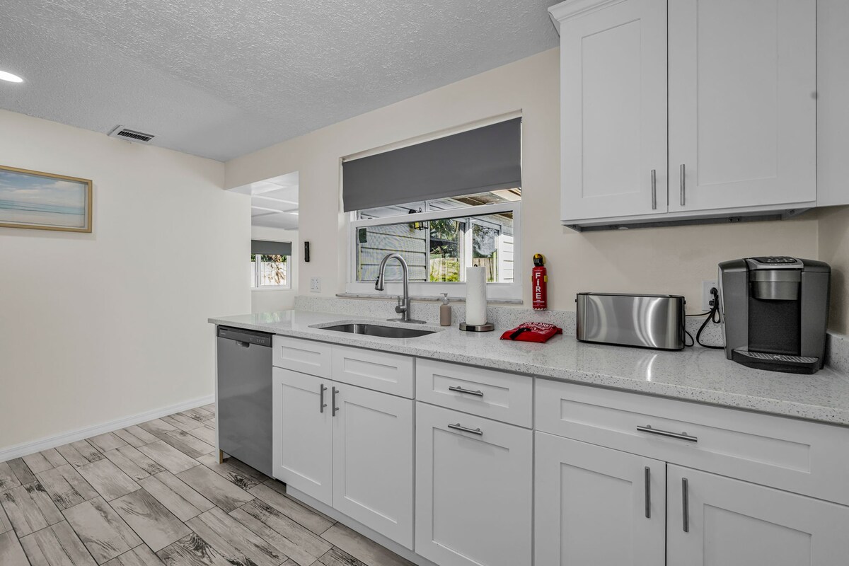 Experience modern coastal luxury at this beautiful designer two bedroom first floor cottage in Downtown Dunedin. Steps from Main Street and a short stroll to gorgeous sunsets at the waterfront. Walk to shops, fantastic restaurants, and nightlife. Make the short drive to award winning beaches- Honeymoon Island, Caladesi Island & Clearwater Beach. Thoughtfully designed and fully stocked for families, pets, beach days. Treat yourself to the perfect coastal getaway at the Barefoot Parrot Cottages.
