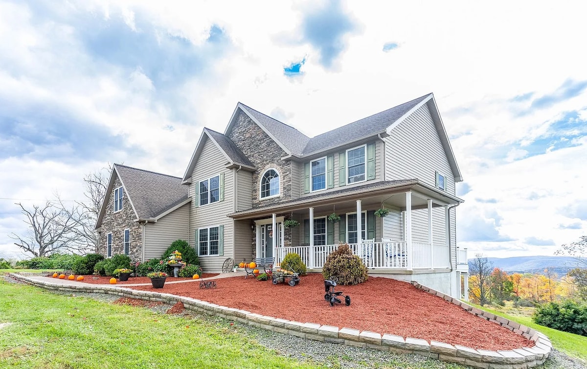 Doživite svoje planinske snove u ovom prekrasnom utočištu smještenom na 11 hektara slikovitog sela. Ovaj prostrani smještaj s 5 spavaćih soba nudi pogled na planine, zabavu na otvorenom i mirno okruženje; savršeno za porodice, prijatelje ili grupe da se opuste i ponovo povežu. ➤ Ognjište ➤ Privatni Pickleball teren i dvorište Prikladno ➤ za kućne ljubimce ➤ Potpuno opremljena kuhinja ➤ U blizini Tioga-Hammond Lakesa, državnog parka Hills Creek i pješačkih staza Vaš planinski bijeg; gdje se spajaju udobnost i priroda.