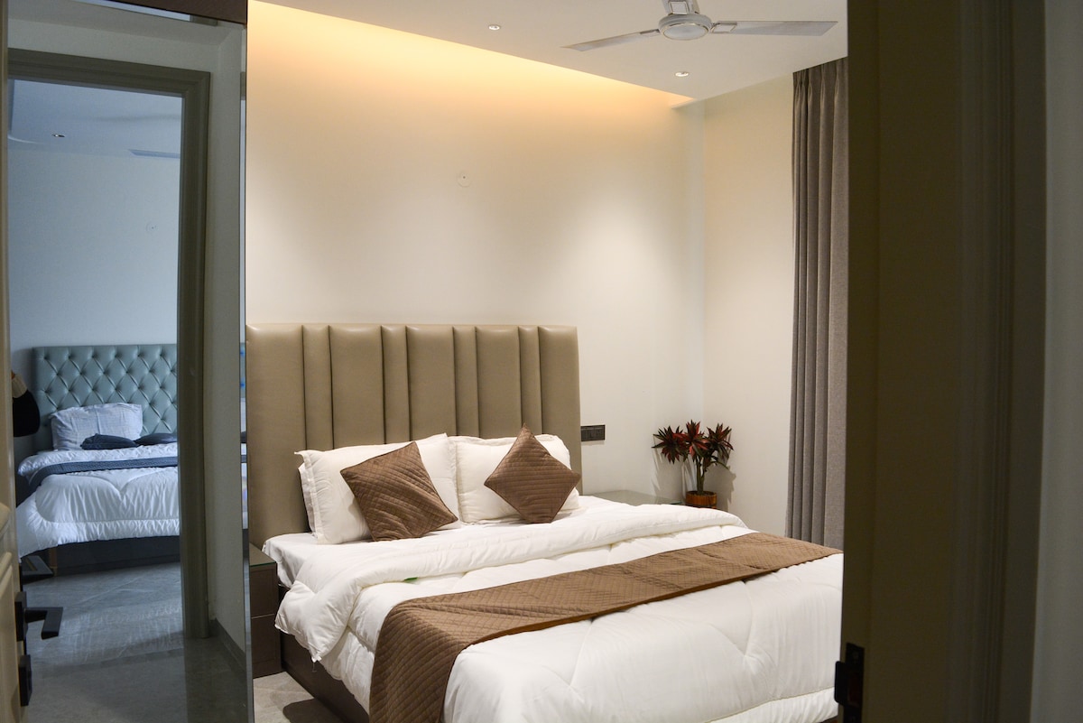 The fully furnished studio appartment, designed sophisticated and beautiful. it's a very spacious 380 sq.ft, luxury room, with full of positive vibes. Also guest will enjoy their full privacy, peace and comfort, as it's a separate unit/flat without any interference. ENTRY:- Self chk-in entry access, through Hi-tech digital security lock, as it's a owner free property.