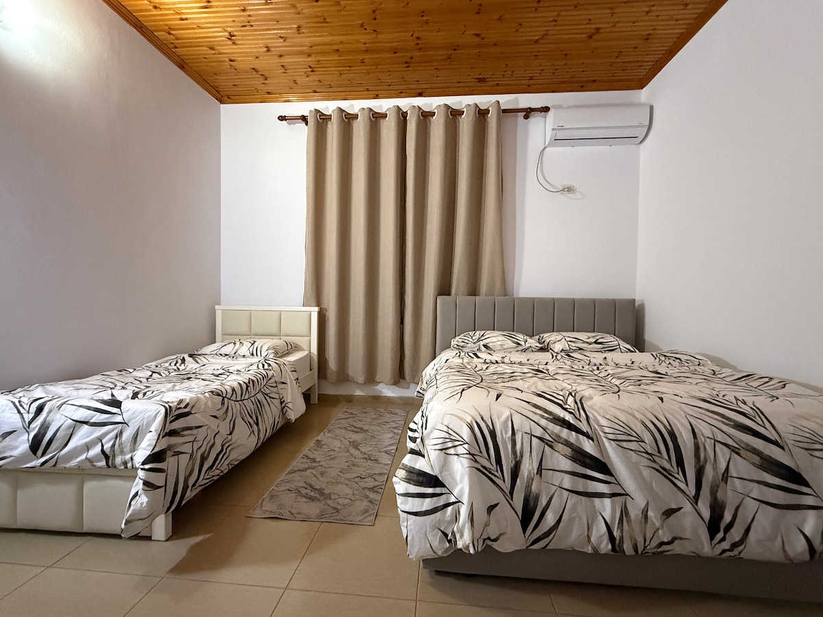 Samo 15 minuta od centra Tirane, ovaj smještaj ispunjen svjetlošću i suncem okružen je bujnim vrtovima. Izađite van i pronaći ćete kafiće, restorane, slastičarnice, lokalne prodavnice i apoteke nadohvat ruke. Obližnja priroda i avanture: Istražite ljepotu jezera Bovilla i planine Dajti, savršene za planinarenje i odmor na otvorenom. Kulturne posebnosti: Krenite na jednodnevni izlet na dvorac Kruja, njegov historijski bazar i obližnje muzeje kako biste iskusili bogato albansko nasljeđe.