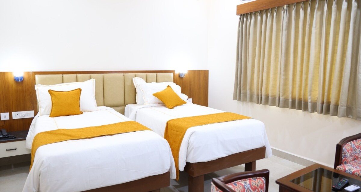 Enjoy a stylish and spacious stay in our Superior Twin Room, featuring two comfortable single beds, elegant interiors, and all modern amenities. Ideal for friends, colleagues, or family members traveling together, this room offers the perfect blend of privacy and comfort.