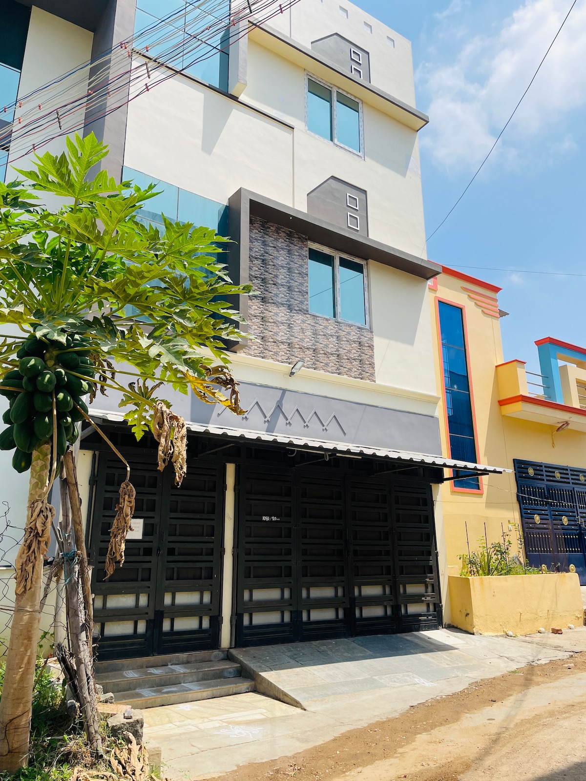 Idealno smješten samo 1 km od Ramanasramama, 2,8 km od hrama,nudeći i praktičnost i mirnu atmosferu. Dio je dobro održavane ograđene zajednice koja pruža sigurno okruženje uz non-stop nadzor putem CCTV kamera. Objekat je u potpunosti namješten kako bi pružio udobnost. Osim toga, smještaj se može pohvaliti prekrasnim pogledom na brdo, dodajući spokojnu prirodnu pozadinu vašem životnom prostoru. Napomena: jedna spavaća soba ima klima-uređaj, a druga nema