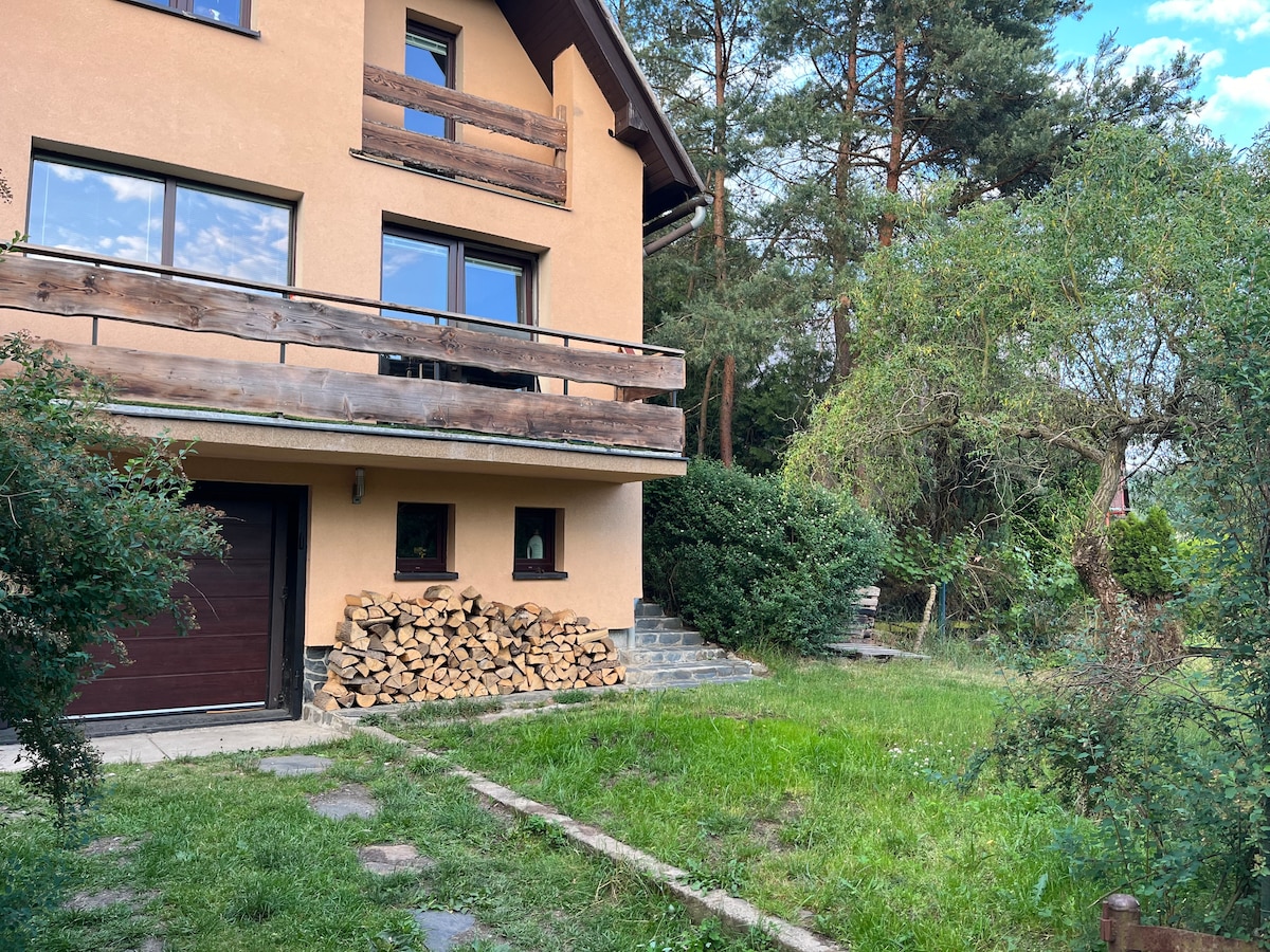V Krušných horách nedaleko Karlových Varů a Božího Daru v malé vesnici jsem si vytvořili naše útočiště. S citem rekonstruované podkroví s výhledem do přírody a koupacím sudem na terase (za příplatek) a domácím kinem. Rádi Ti naše místo propůjčíme. K dispozici Ti bude celý prostor včetně terasy. Pomůžeme naplánovat výlet a objevit krásy Krušnohoří. Staráme se o naše místo s láskou a pečlivostí. Chceme, aby ses tu i Ty cítil jako doma. Hory, příroda i lázeňské město od každého je tu trochu!