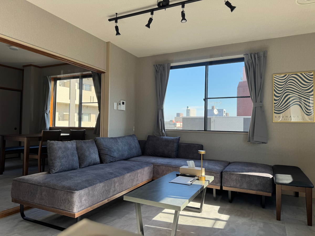 宇都宮駅東口徒歩4分、5LDK、最大20名様まで宿泊可能、最上階、飲食店徒歩圏内、無料駐車場付き