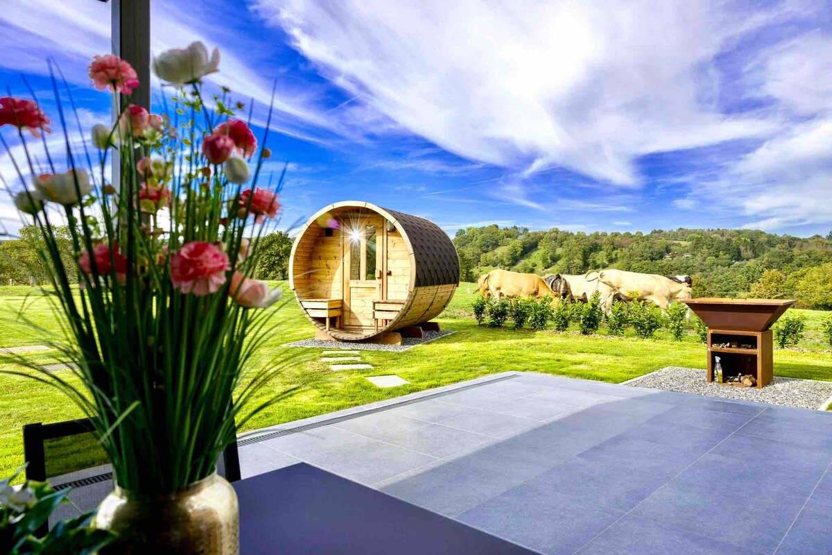 A seulement 1.3 km du centre de la plus petite ville du monde. Profitez du calme de la campagne tout en étant à 2 minutes de l'effervescence des bars et restaurants. L'Orée de Durbuy, vous offre une vue exceptionnelle grâce à sa grande baie vitrée de 5 mètres. Vous profiterez d'une salle de bain privative dans chacune des chambres, d'un bain à bulles, d'une cuisine avec électroménagers haut de gamme, d'une borne de recharge pour votre voiture. Soyez les bienvenus chez nous.
