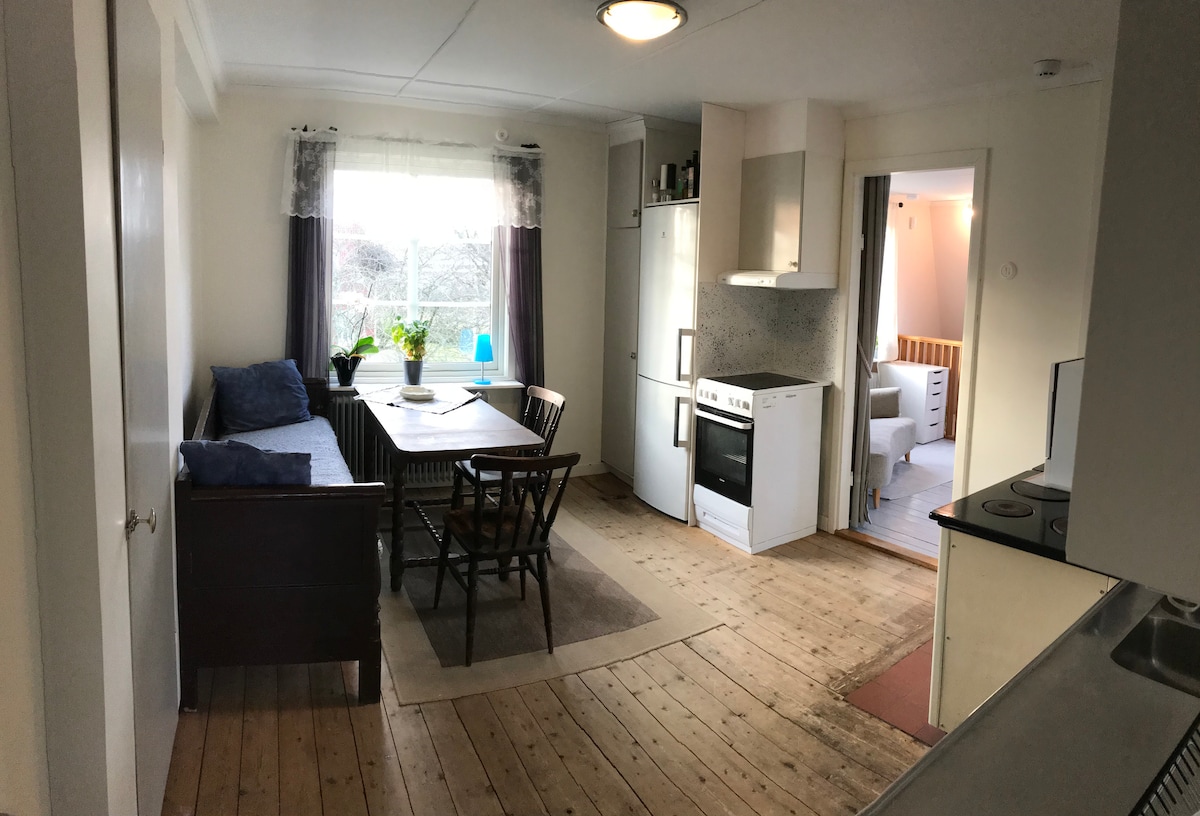 Lijep stan u vili souterrain s blizinom centra grada Kungsbacka koji je, između ostalog, dobro povezan. Göteborg i Varberg. Stan se nalazi u mirnoj stambenoj četvrti s oko 3,5 km do mora. Stan se sastoji od 2 sobe i kuhinje. Jedna spavaća soba s bračnim krevetom i dnevnim boravkom s kaučem na razvlačenje za 2 osobe. Kuhinja ima šporet/rernu i mikrovalnu pećnicu. Tu je i aparat za kafu, kao i električno kuhalo za vodu i pribor za jelo (pribor za jelo,čaše itd.). Tu su i ormari. Ljuljačke i kućica za igru za djecu na licu mjesta. Parking na ulici.