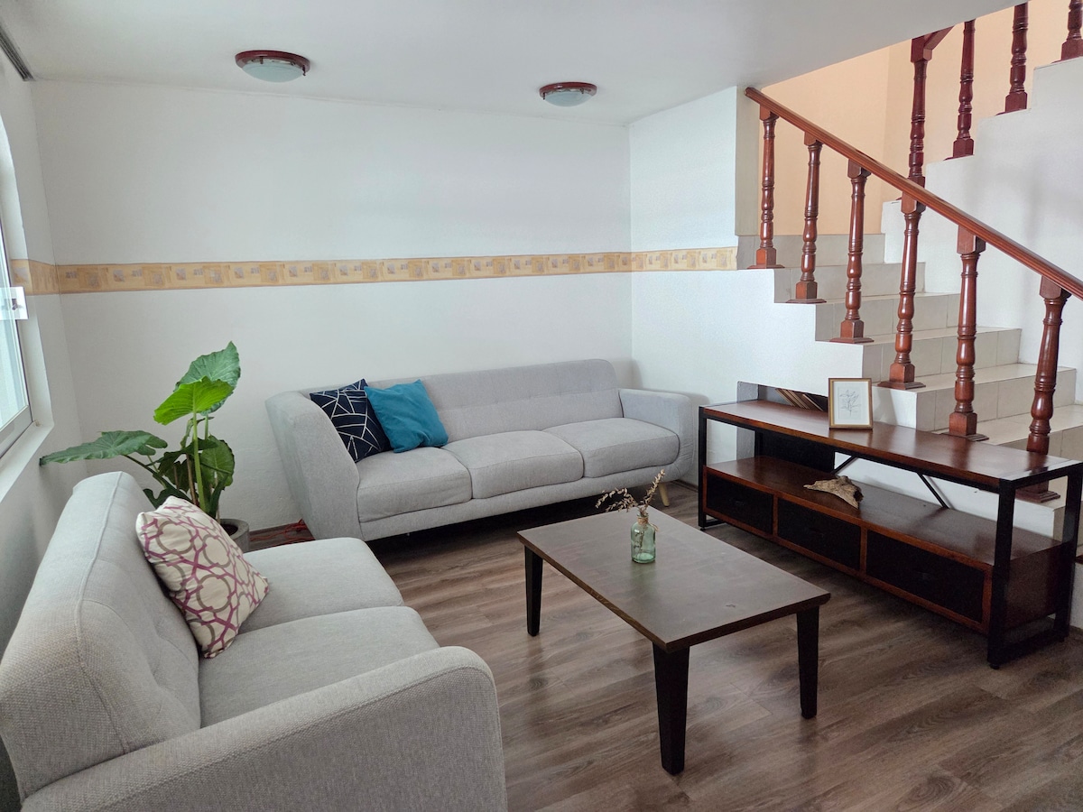 Moderno potkrovlje dvostruke visine, potpuno opremljeno. Odlična lokacija za poslovna i poslovna putovanja; imamo naplatu i nudimo popuste za duže boravke. Internet usluga od 600 MB i TotalPlay TV. Spavaća soba s bračnim krevetom na spratu i dnevnim boravkom s kaučem na razvlačenje, 1,5 kupatila, mini split klima uređajem. Potpuno opremljena kuhinja, mašina za pranje i sušenje veša, privatni parking i zelene površine.
