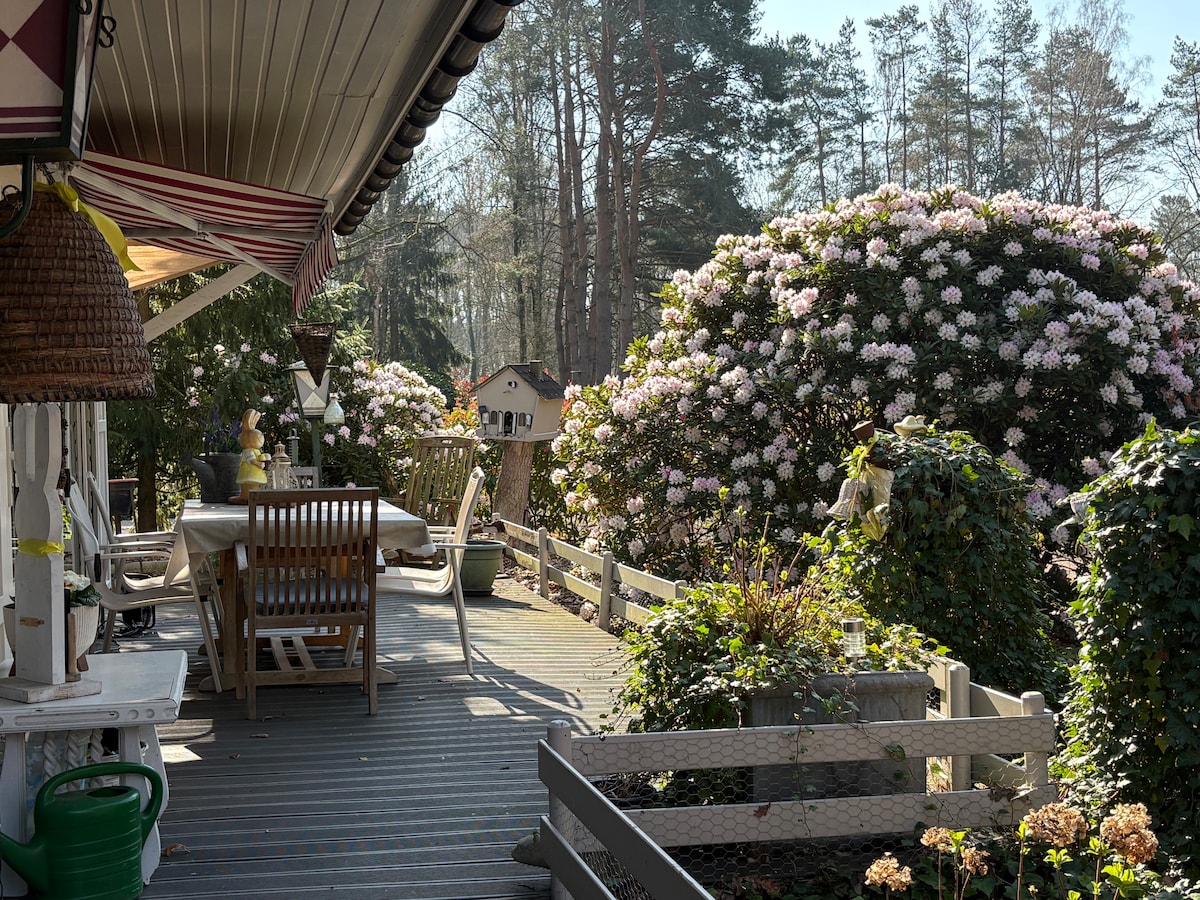 Moderno uređen apartman koji se nalazi uz glavnu kuću sa zasebnim ulazom. Smješten usred zelenila s prekrasnim pješačkim stazama i mrežom za brdski biciklizam u blizini. 1 spavaća soba s bračnim krevetom, 2 sobe s bračnim krevetima. Dostupan je dječji krevetić za putovanja. U dnevnom boravku nalazi se veliki ugaoni kauč i trpezarija za 10 osoba. U vrtu imate pogled na konje... Odvojena terasa s garniturom za sjedenje Iznajmljivanje 2 električna bicikla na licu mjesta. Jahanje / doručak / roštilj mogući na zahtjev.