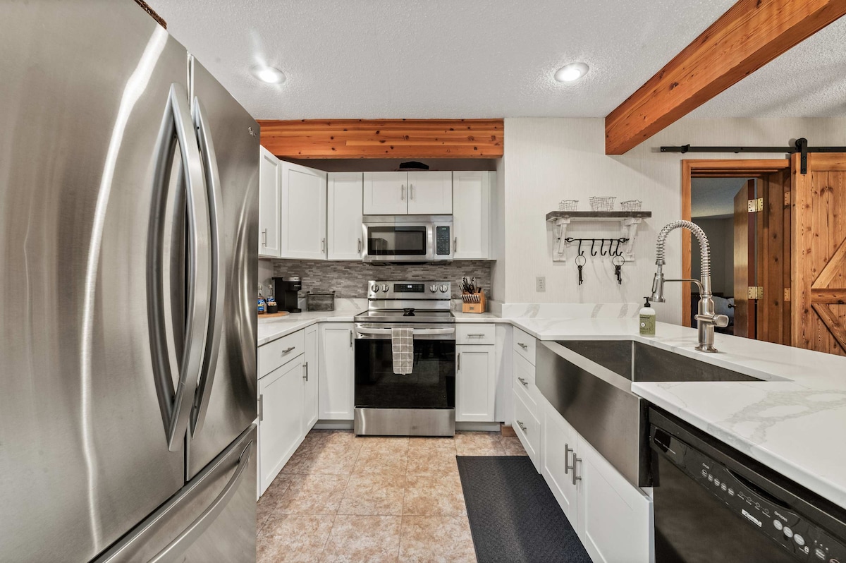 Ovaj kondominij je krajnja jedinica s pogledom na teren za golf Shanty Creek i jezero Bellaire. Uživajte u modernom uređenju, kožnim kaučima, potpuno opremljenoj kuhinji (frižider, šporet, rerna, mašina za suđe, aparat za kafu, bojler, mikrovalna pećnica i toster), svi televizori su Amazon Fire, pa se prijavite na svoj glavni korisnički račun i imat ćete pristup Netflixu, Youtubeu, Disney+ ili bilo kojoj drugoj usluzi streaminga na koju se pretplatite. Ušuškajte se pored drvenog kamina (drva za ogrjev dostupna za kupovinu u porodičnoj cijeni ili na lokalnim farmama).