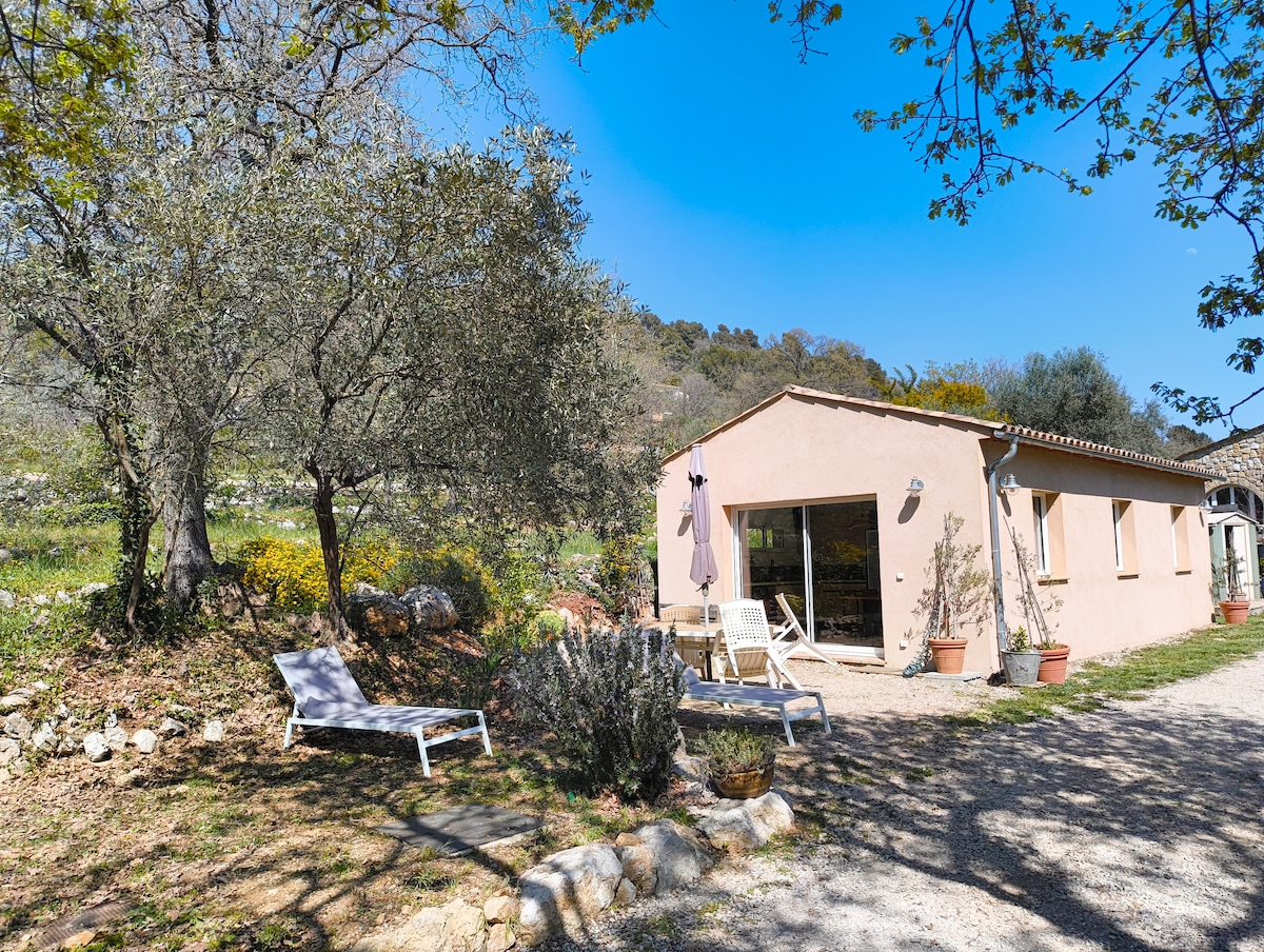 Smješten u šupljini sela, u zemlji sela na vrhu brda i na pola puta između Monaka i St. Tropeza, rado ćete doći i opustiti se u našem kutku raja. Idealno smještena: sela Tourrettes i Fayence (3xsweek market)su na pješačkoj udaljenosti. Stan u prizemlju naše kuće, sastoji se od spavaće sobe, kupatila, kuhinje dnevnog boravka, vanjske terase i posebno velike parcele zasađene stotinama godina starim maslinama s malom stazom koja se spušta do privatne rijeke.