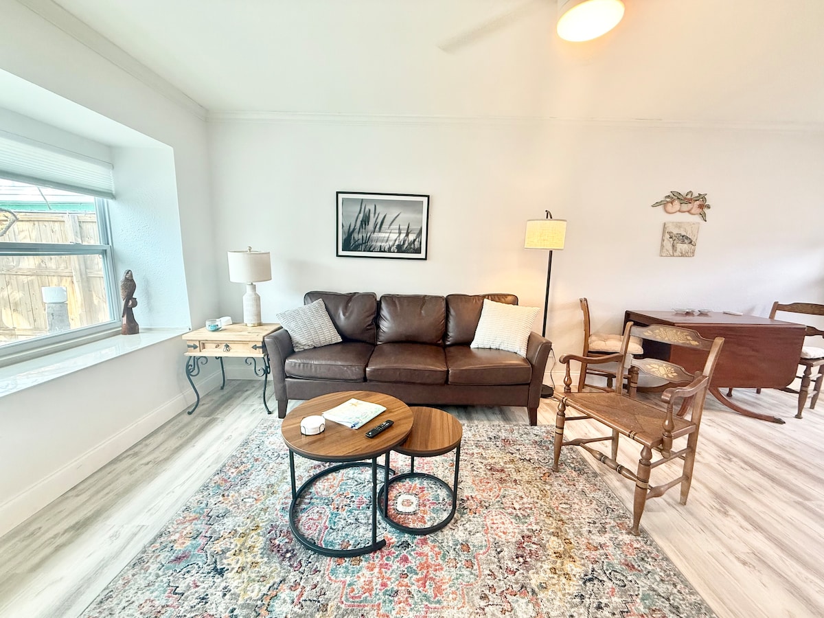 Šarmantna 1 spavaća soba, 1 kupatilo, samo nekoliko koraka od bijelog pijeska plaže Clearwater! Savršeno za romantični bijeg, vikend opuštanja, šetnju plažom, sakupljanje školjki i najljepše zalaske sunca na svijetu! Vrhunska lokacija u srcu plaže Clearwater u blizini najboljih restorana, barova i trgovina. Samo nekoliko blokova dalje je dječje igralište i tereni za pickleball! Sve što vam je potrebno za vaš sljedeći bijeg na plažu!