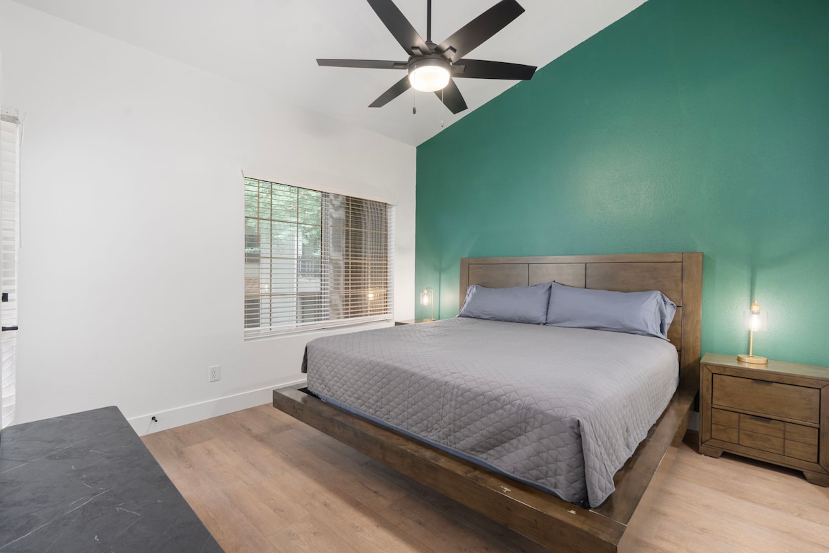 Doživite Scottsdale u prostranom luksuznom stanu sa spektakularnim vibracijama i sadržajima. Jedinica: → Lightning Fast Wi-Fi → Namjenski radni prostor + monitor → Udoban bračni krevet (180x200 → 60"TV u dnevnom boravku + Netflix → 55"TV u spavaćoj sobi + Netflix → Potpuno opremljena kuhinja → Privatni parking za→ pranje i sušenje veša Sadržaji s 5 zvjezdica: bazen i jacuzzi u→ odmaralištu → Cabanas i Lounges Teretana u→ punoj veličini Idealno za poslovne putnike i korporativne klijente koji žele iskusiti bogatu kulturu Scottsdalea sa stilom.