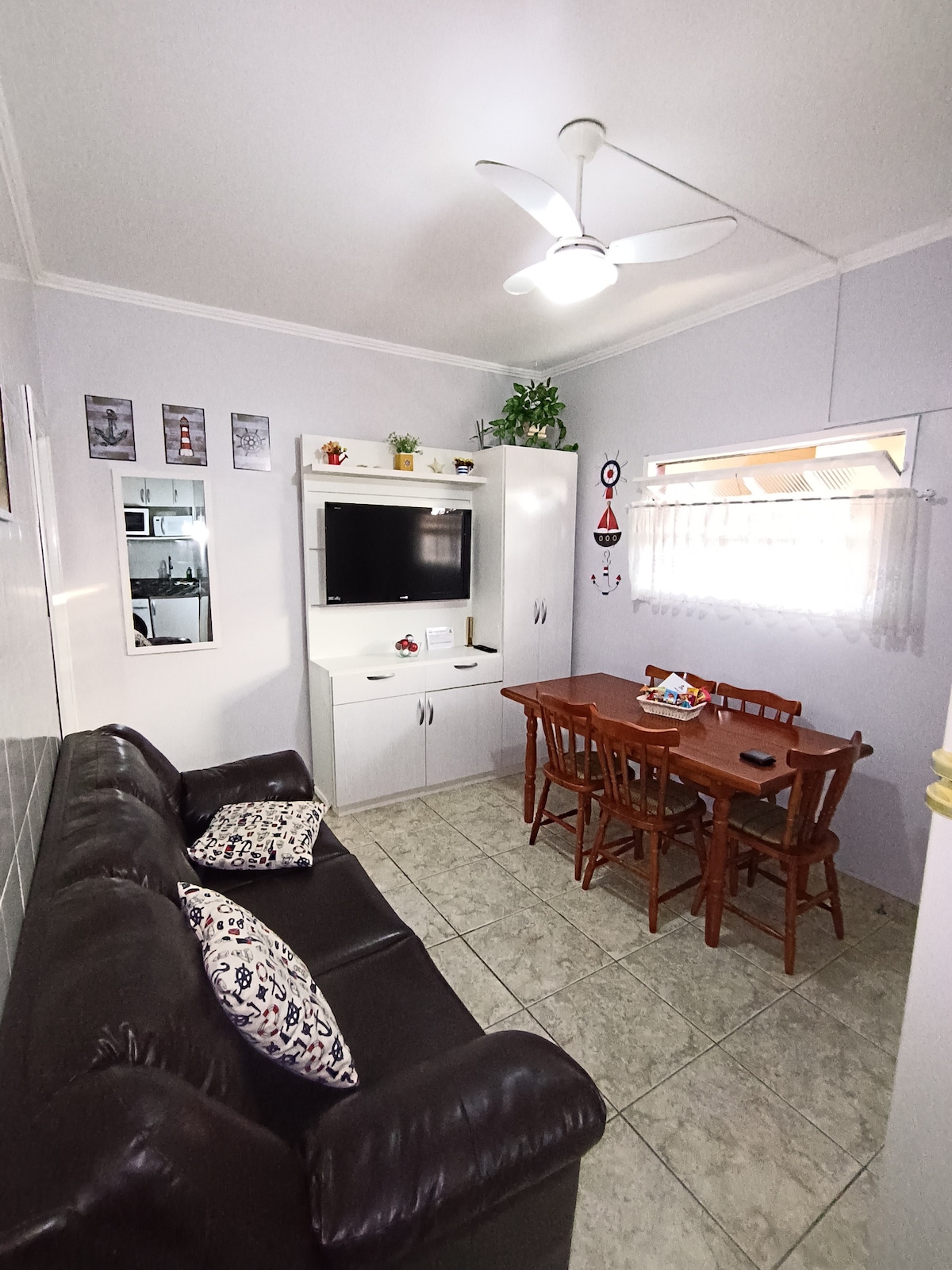 A localização é perfeita para quem quer estar a poucos passos da praia, na Av. Beira-Mar, e próximo de restaurantes, bares e comércio local. O apartamento, recentemente reformado, possui um quarto, com cama de casal e beliche, e, na sala, um sofá-cama. A cozinha está equipada com micro-ondas, cafeteira e fogão. Há garagem privativa e gratuita para o seu carro. Há churrasqueira coletiva (uso sob liberação). O condomínio é fechado e possui zelador. Capacidade para até 6 pessoas.