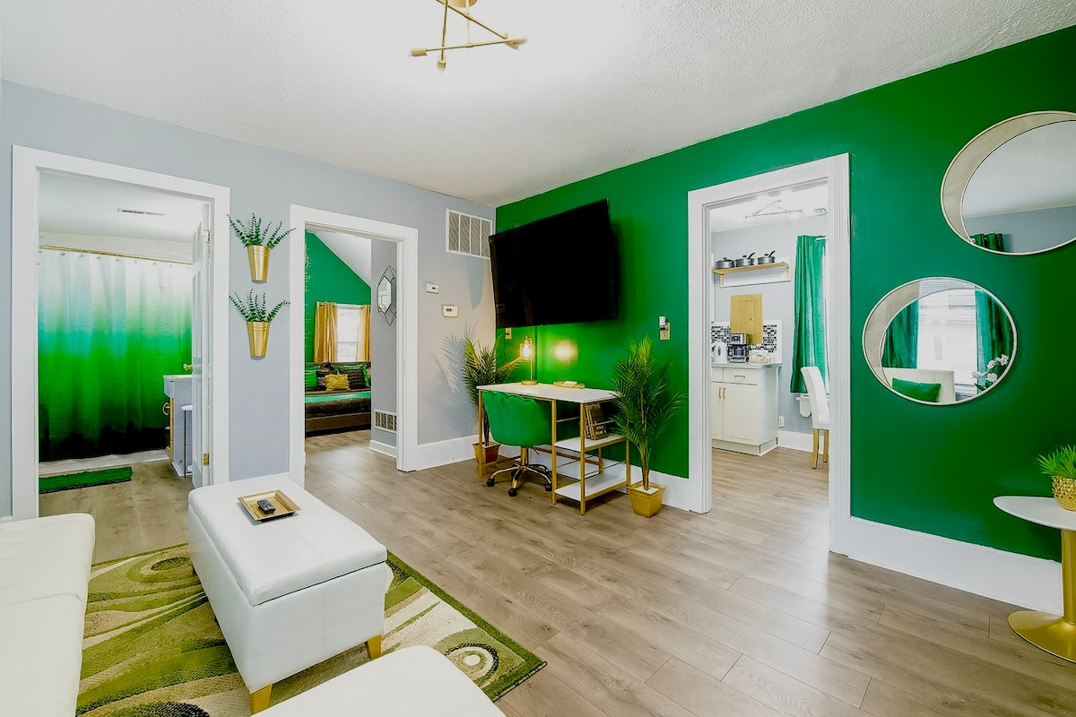 NAMJEŠTAJ JE AŽURIRAN 24. 8.! Doživite pravu urbanu oazu smještenu između dva fantastična restorana u Ohio Cityju. Ova jedinica nižeg nivoa je opremljena svime što vam je potrebno za ugodan boravak, uključujući opuštajuću masažnu kadu. Uživajte u svemu što Cleveland nudi s ove lokacije do koje se može doći pješke STROGO SE PRIMJENJUJE: Prekoračenje broja rezervisanih gostiju ili vremena masažne kade rezultirat će naknadom od 500 $. Naši smještaji su okruženi mirnim stambenim komšijama i ova pravila pomažu im da osiguraju mir.