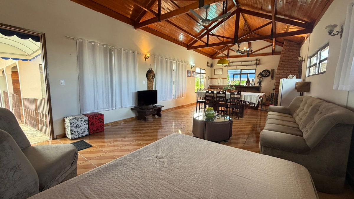 Studio mobiliado e aconchegante na Rua Barão do Rio Branco, 1477 – ao lado da rodoviária. Ideal para quem busca praticidade, conforto e excelente localização. Acomoda até 4 pessoas (cama casal + colchões auxiliares). Possui sofá, TV, geladeira, fogão, ventilador de teto, churrasqueira, garagem coberta e piscina. Incluso energia, água e internet. Não fornece roupa de cama e banho. Não hospeda crianças.
