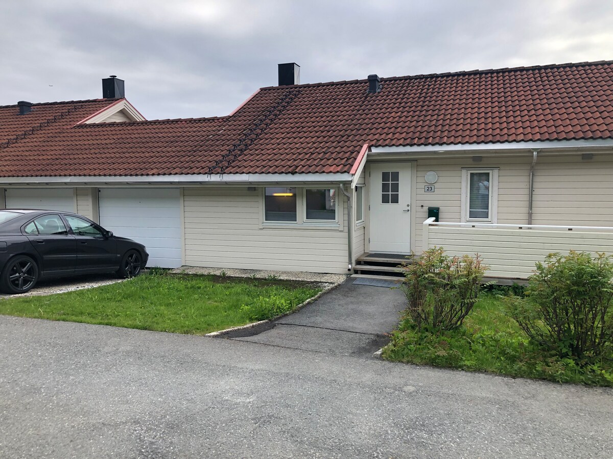 Glavni sprat u horizontalno podijeljenoj samostalnoj kući, ukupno 80 kvm za dvije spavaće sobe i dnevni krevet u dnevnoj sobi pruža prostor za spavanje za 5 osoba. Hamna Sør, Tromsøya. Neposredan pristup mreži svjetlosnih staza odmah iznad kuće. 4 min do autobusa, česti polasci za centar, traje oko 25 min. Prodavnica 7 minuta hoda. Besplatan parking na parceli za jedan automobil. Terasa okrenuta prema jugu i balkon s pogledom na more pružaju ponoćno sunce ljeti i dobru priliku za polarnu svjetlost zimi. Moderna, udobna, potpuno opremljena kuhinja. Gosti imaju sve na raspolaganju