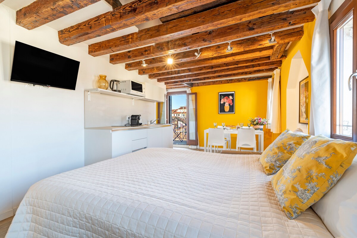 Udobno se smjestite uz knjigu, doručkujte i večerajte dok se divite nevjerovatnom pogledu na zvonike i kanale Venecije, živite kao pravi venecijanski okrug u Veneciji, nekoliko koraka od mosta Rialto, Ca' D' oro i San Marco u stanu završenom s namještajem i ukrasima koje su izradili venecijanski i Murano. Osjećat ćete se kao da doživljavate fantastičnu atmosferu iz 1800-ih, ali sa svim udobnostima modernog stana. Ne propustite ovaj nevjerovatan doživljaj
