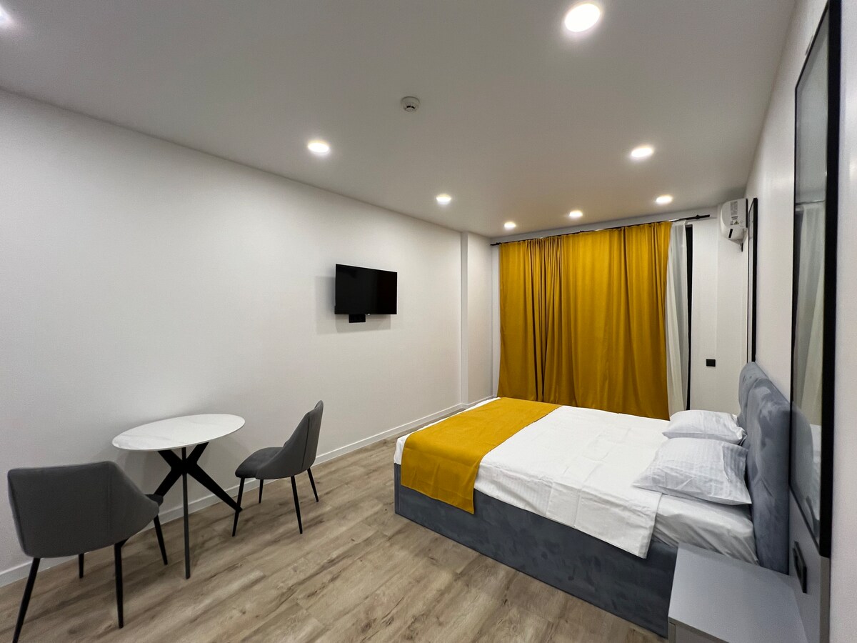 Studio u boho stilu u historijskom centru Batumija — toranj Porta Batumi – Panoramski prozori s prekrasnim pogledom na more, planine i grad - Kada! - Savršena čistoća i svježina! - Odlična zvučna izolacija! - Topli podovi! - Mnogi liftovi koji rade bez kašnjenja U blizini: - More, stari grad, trg Europe, bulevar, restorani i kafići udaljeni su samo 5 minuta - Supermarketi, apoteke, barovi za nargile i barovi su u blizini – Praktično parkiranje u blizini kuće