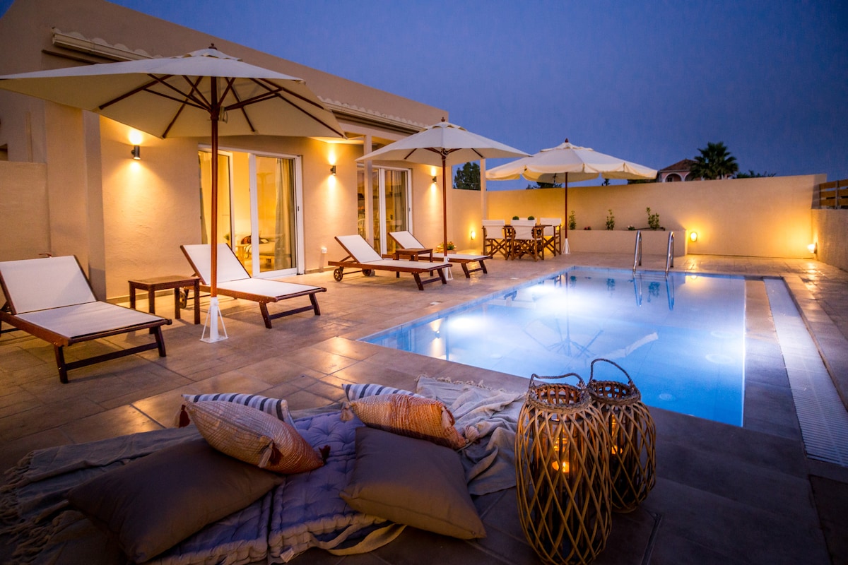 Okruženi udobnim vrtom, nalaze se 2 apartmana smještena u privatnom području na brdima Mavromatija, zapadno od Laganasa i Agios Sostisa. Sva brda su prekrivena maslinicima i šumom, što ovo čini mirnim i opuštajućim mjestom, oazom u prekrasnoj prirodi. Pogled je predivan i uključuje zelene doline, zaljev Laganas i Kalamaki, nacionalni park Caretta Caretta, istočni planinski lanac Zakynthos i malo ostrvo Pelouzo. Samo 10 minuta hoda kroz prekrasne maslinike, stići ćete do plaže Laganas Gulf. Potrebno je 10-15 minuta hoda do odmarališta Laganas, gdje se nalaze restorani, barovi, prodavnice, mini-tržnice i aktivnosti. Automobilom ste udaljeni samo 15 minuta vožnje od aerodroma, glavne luke Zakynthos i grada Zakynthos. Apartman uključuje jedan bračni krevet, kuhinju s šankom za sjedenje i kupatilo s tušem. Dodatni krevet za jednu osobu ili dječji krevetić se mogu dodati na zahtjev. Kuhinja uključuje frižider i ploču za kuhanje, kao i sve potrebno kuhinjsko posuđe. Wi-Fi, SmartTV i klima-uređaj su uključeni. Za hladnije periode tokom godine, apartman se zagrijava podnim grijanjem. Vani se nalazi prostor za sjedenje na verandi i ležaljke za sunčanje. Privatni parking u hladovini nalazi se odmah ispred apartmana. Apartmani se nalaze u zatvorenom prostoru. Posteljina i peškiri su uključeni kako bi vaš boravak bio ugodniji. Kućni red: - Vrijeme dolaska je 15:00 sati, a odlazak u 11:00 sati. - Pušenje nije dozvoljeno unutra, samo vani. - Kućni ljubimci nisu dozvoljeni u objektu. - Besplatan parking u hladovini dostupan je u sklopu objekta.