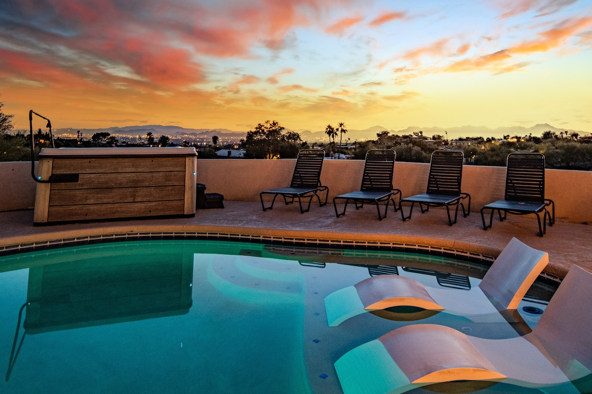The Skyline is one of many amazing BookTucson homes! ♥ our listings to find us easy. Pozivamo vas da uživate u jednoj od vrhunskih kuća za odmor u Tucsonu. Nevjerovatan pogled na grad, planine i zalazak sunca iz bazena i masažne kade, posteljina kvalitetna kao u odmaralištu i još mnogo toga! Ovaj smještaj je za one koji cijene kvalitet. Kao mali lokalni porodični biznis, ponosni smo što pružamo najbolja iskustva u smještajima za odmor u Tucsonu. Kliknite na „Prikaži više” da biste saznali više