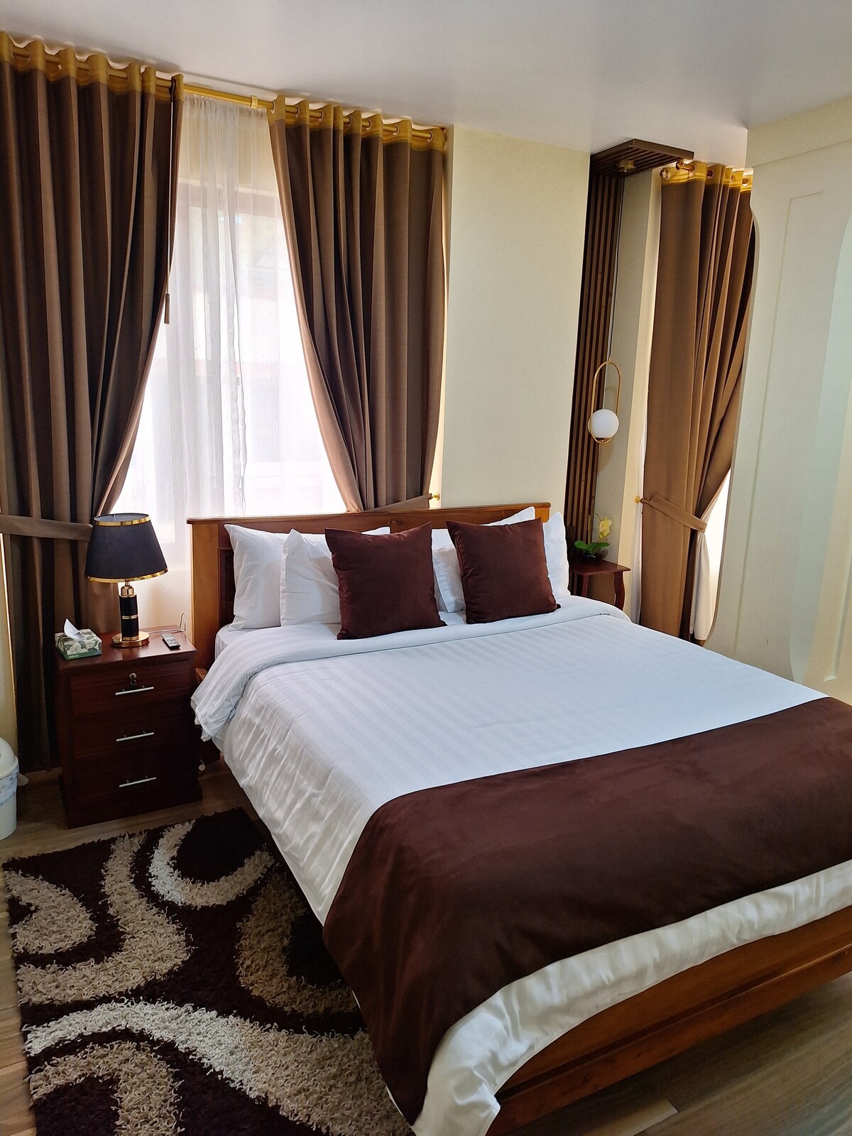 Descubre Ambato Premier Suites, un espacio tranquilo y acogedor en el corazón de la ciudad. Ubicado junto al Hotel Ambato, este departamento independiente ofrece una vista panorámica única y la calidez de un hospedaje familiar, con pan ambateño de bienvenida. Su ubicación céntrica permite fácil acceso a parques, museos, comercios, hospitales y sectores como Ficoa y Miraflores. Ven y disfruta de tu casa en Ambato.