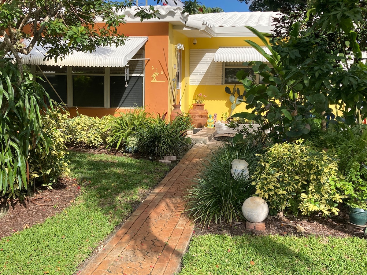 Svijetlii sunčani tropski bungalov smješten u neobičnoj plaži Dania, samo 1,5 milje od bijelog pijeska Dania Beacha i državnog parka Mizel! Tropsko okruženje u privatnom stražnjem dvorištu uživalo je od ljuljačke na trijemu u zaštićenom lanaiju. Vanjski tuš je vrlo osvježavajući ! 5 minuta do aerodroma FLL, 15 minuta do FLL i Wilton Manorsa 25 minuta do Haulover Beacha u Miamiju (FKK). U blizini je više restorana i kazina. Odlično mjesto tokom cijele godine! Hollywood BCH & Restaurant Row udaljeni 10 minuta. Izvan glavne autobuske linije
