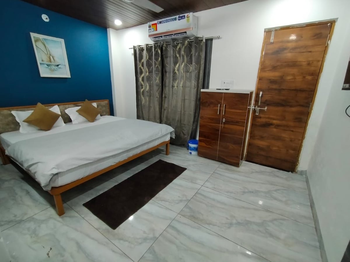 "Looking for a peaceful stay away from the city's hustle and bustle, that's clean, comfortable, and equipped with all basic amenities? You've found it. It's the perfect place for families and groups, where you'll feel you're in you own house ✔ We offer paid rickshaw🛺 services for Ujjain darshan, including pick-up and drop. Additionally, cabs & traveller for Omkareshwar darshan. 🛕 2.5 km from City Center 🕉️ 5 km from Mahakal Temple (15 mins) 🚂 4 km from Railway Station (10 mins)
