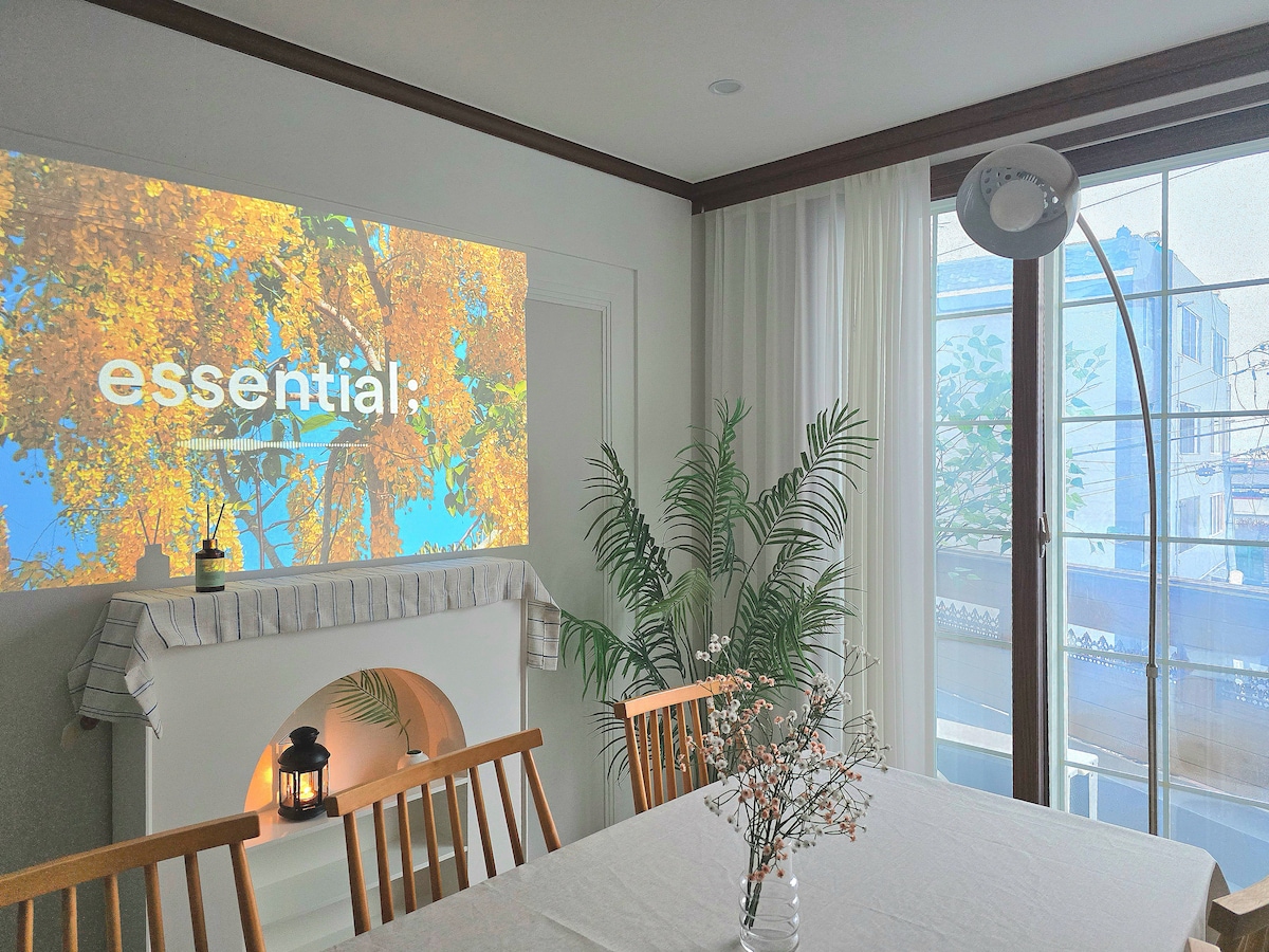 Zdravo😊 Ovo je Bauhaus, udoban i udoban dom daleko od doma u Gwangalliju. Može se koristiti za 2 spavaće sobe i 5–6 gostiju. S prednje strane možete vidjeti dva glavna tornja mosta Gwangan. Gwangalli Beach, Millak Fish Market i Waterfront Park udaljeni su 3-5 minuta hoda. U blizini se nalaze kafići, prodavnice i restorani, tako da ih možete udobno koristiti. „Ovaj smještaj je registrovan i funkcioniše kao legalna domaća firma za iznajmljivanje stambenog prostora zbog posebnog slučaja Mistmenta.” Dolazak u 15:00 h Odlazak u 11:00 - Potrepštine za tuširanje Fen/pegla za kosu/peškiri/šampon/regenerator/gel za tuširanje - Kuhinjski pribor Frižider/mikrovalna pećnica/indukcija/električno kuhalo za vodu/nož/daska za rezanje/makaze/kašike i štapići/tanjiri/lonci/šolje/čaše za vino - Ostalo Wi-Fi/TV/mašina za pranje veša/deterdžent za pranje veša/parna pegla/Samsung greda ✔️Ostale mjere opreza. Imajte na umu da se rezervacija ne može izmijeniti u roku od 30 dana nakon dolaska.