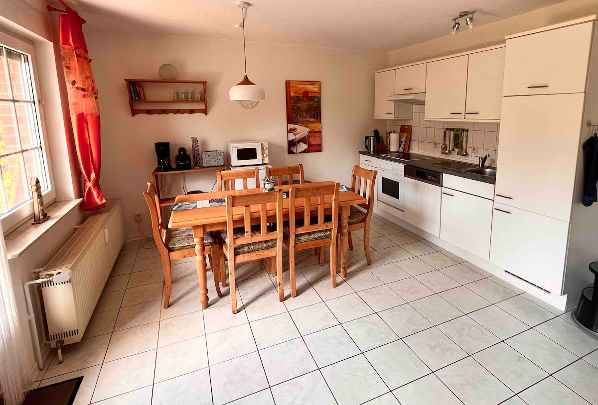 Iznajmljujemo našu udobnu, elegantnu seosku kućicu na mirnom zapadu od Rügena. Naša kćerka to naziva „Familiekate Schwalbenflug” i to funkcioniše. Na raspolaganju su vam 4 spavaće sobe za odrasle i djecu. Kuća je temeljito renovirana do 2020. godine, ima modernu kuhinju i dvije prekrasne tuš kabine, prostor za sjedenje s kaminom i terasu s pogledom na farmu konja i paddock.