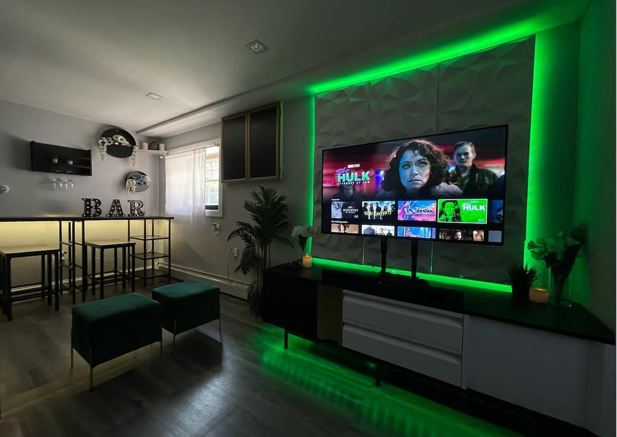 Osjećajte se kao kod kuće u ovom šarmantnom i udobnom smještaju. Ima dovoljno prostora za opuštanje i spavanje, što ga čini savršenim mjestom za dovođenje cijele porodice. Uživajte u hidromasažnoj kadi i udobnom dnevnom boravku s TV-om od 70inča i društvenim igrama. Smatramo da će vam naš smještaj pomoći da iskusite sve što okolina nudi. U BLIZINI New Yorka, Metlife, Barclays, American Dream Mall! Nalazi se na kratkoj udaljenosti od 5 minuta hoda od javnog prevoza do New Yorka i okolnih područja.