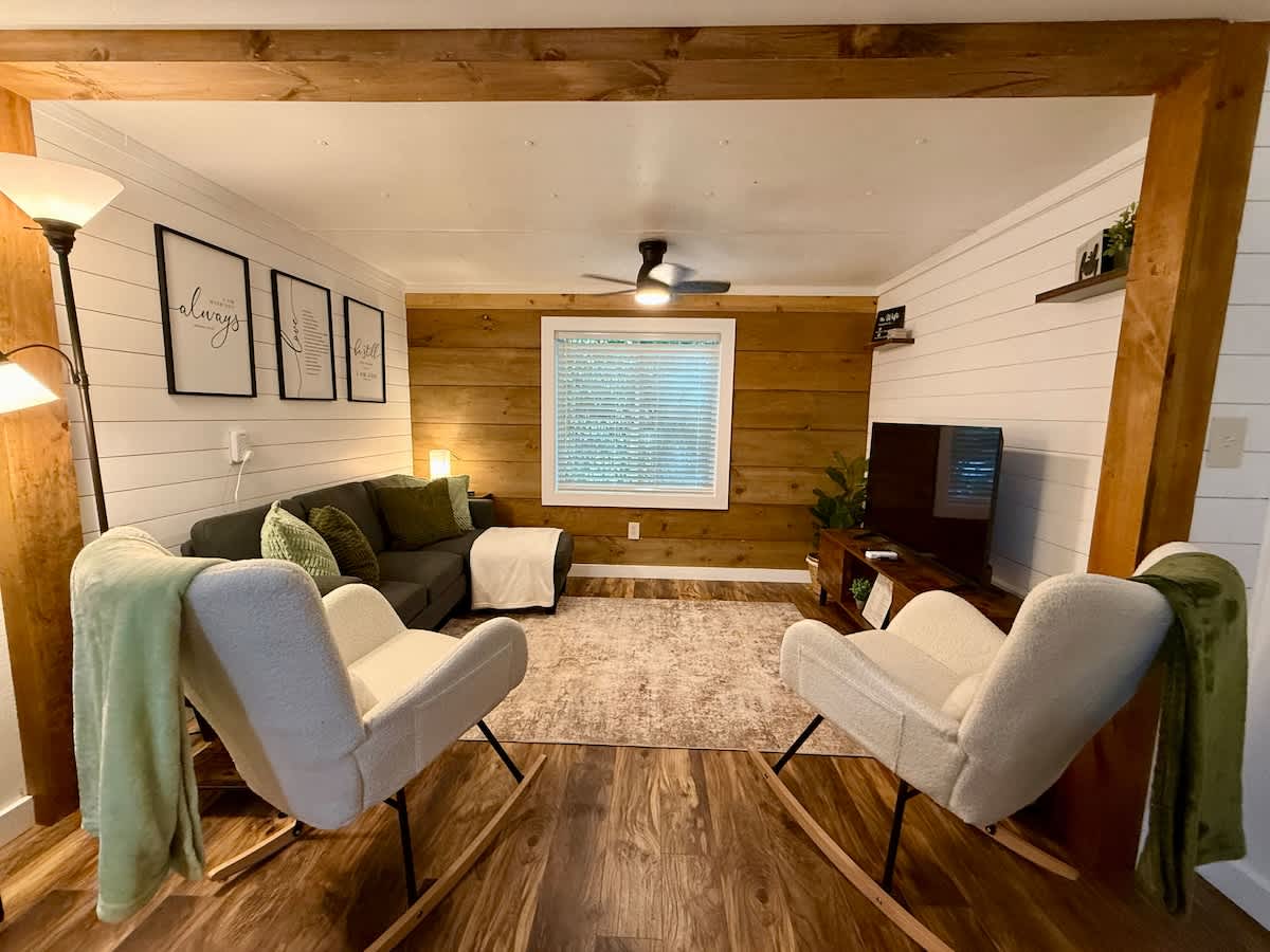 Izdahnite stres i udahnite mir u planinama Sjeverne Georgije. Naša udobna brvnara za maženje pruža resetovanje koje vam je potrebno s prednjim trijemom s pogledom na planine Blue Ridge, potpuno opremljenom kuhinjom, terasom s prostorom za jelo, roštiljem, grijalicom i masažnom kadom! Probudite se u miru naše neobične zajednice dok pijuckate kafu na našem trijemu s pogledom na planine. U večernjim satima se opustite u masažnoj kadi uz čašu vina, a zatim se udobno smjestite pored kamina kako biste snimili film za opuštajuću noć!