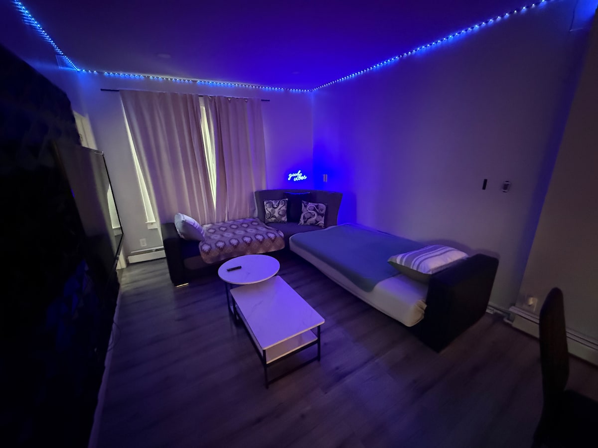 Zabavan i jedinstven odmor samo 30 minuta automobilom od New Yorka ili 40 minuta autobusom NJ Transit Express 107, 10 minuta od aerodroma Newark, Prudential Centra, univerziteta Rutgers & Seton Hall i 15 minuta od stadiona MetLife i American Dream. Ovaj prostor je savršen za romantičan odmor ili za zabavu gostiju. Tu je sto za bilijar/ping pong, zvučnik, mnogo svjetala, roštilj na ugalj i plin i privatna masažna kada otvorena tokom cijele godine isključivo za vas tokom vašeg boravka. Gosti su dozvoljeni.