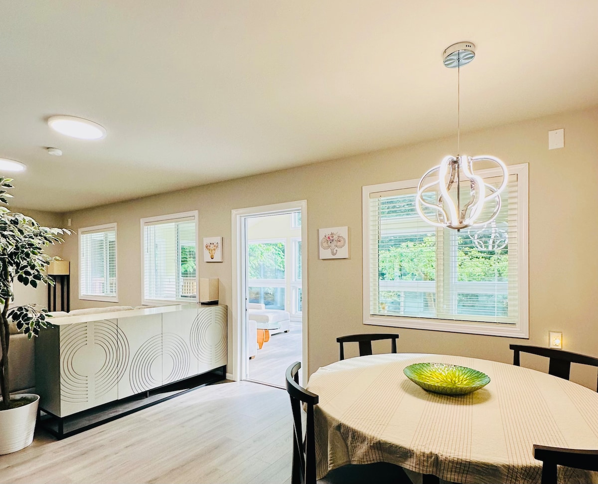 Uživajte u udobnom apartmanu udaljenom samo nekoliko minuta od prelijepog jezera Sammamish. Gledajte FIFA Svjetsko prvenstvo, radite ili se odmarajte, imat ćete cijeli studio za opuštanje ili produktivnost. Prošetajte, trčite ili vozite bicikl na obližnjoj stazi s pristupom jezeru. Blizu 520, I-90, lake željeznice, 10 minuta do Microsofta, vinarije, pješačke staze, 3 minute do trgovine/restorana. Samo 30 minuta od centra Seattlea sa svim što Emerald City nudi, od sporta, koncerata i skijaških staza, trajekta do ostrva i još mnogo toga! Klima uređaj + sprat 🔥Besplatno punjenje električnih vozila!