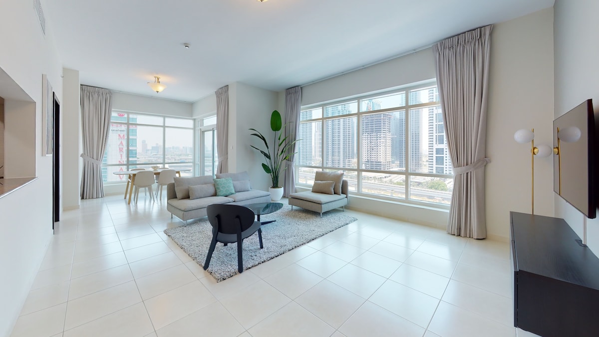 „Novi stan s 1 spavaćom sobom i potpuno novim namještajem u srcu marine Dubai Dubai. Prilagođeni bračni krevet i udoban kauč u dnevnoj sobi. Fascinantan pogled na Marinu i Znamenitost. U zgradi se nalazi potpuno opremljena teretana i bazen, a ako izađete van, naći ćete marinu koja hoda samo niz zgradu gdje možete popiti jutarnju kafu ili jutarnje trčanje. Apoteka i klinika odmah ispod zgrade. Vrlo čista i mirna zgrada.
